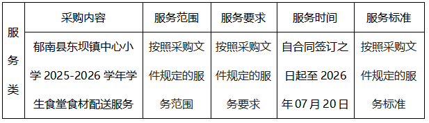 二、项目名称:郁南县东坝镇中心小学2025-2026学年学生食堂食材配送服务