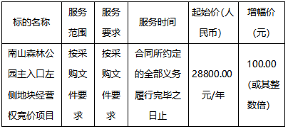 南山森林公园主入口左侧地块经营权竞价项目结果公告