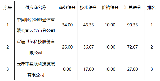 供应商名称:中国联合网络通信有限公司云浮市分公司