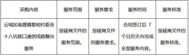 二、项目名称:云城区南盛镇黎明村委至十八坑路口通信线路整治服务